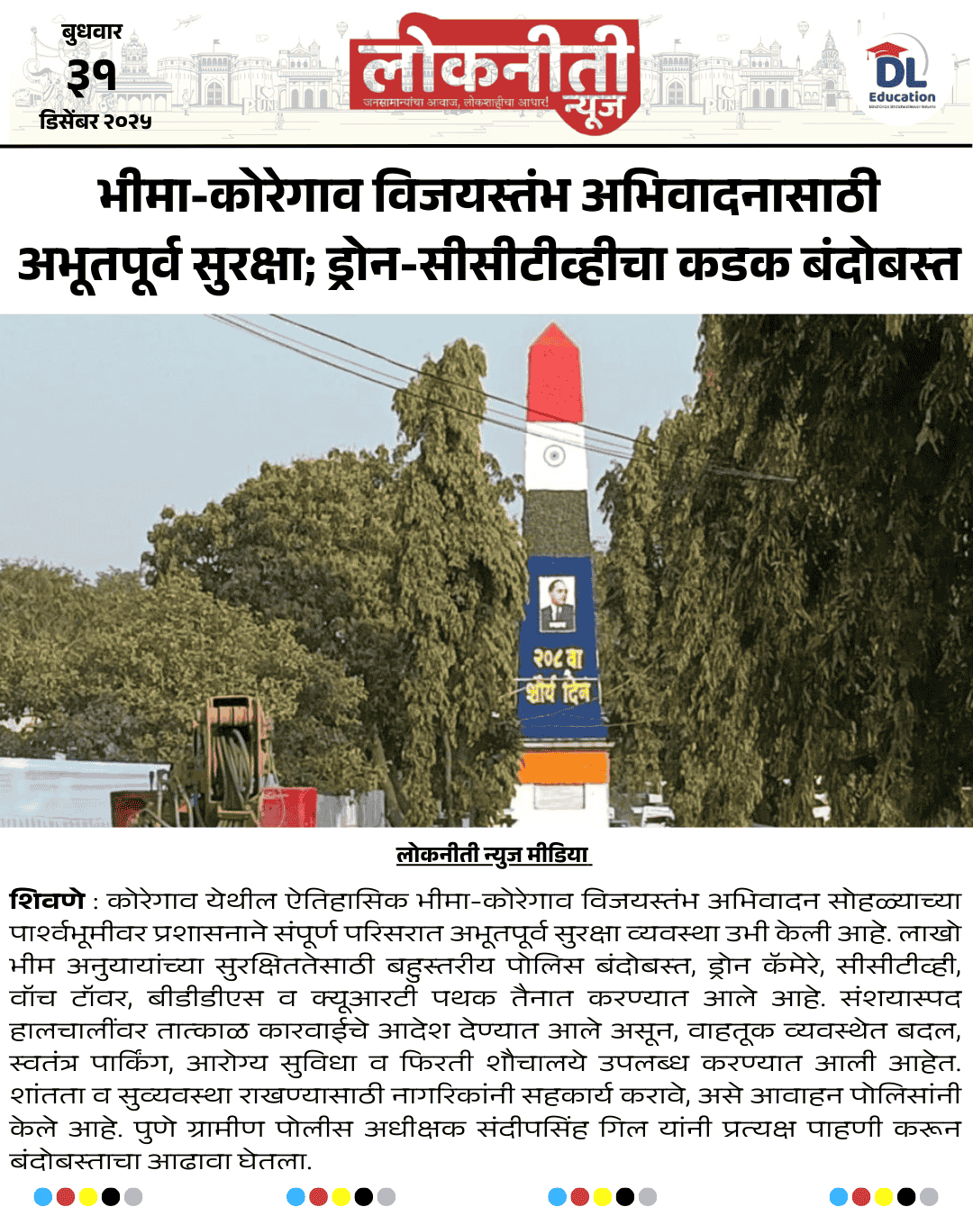 भीमा-कोरेगाव विजयस्तंभ अभिवादनासाठी अभूतपूर्व सुरक्षा; ड्रोन-सीसीटीव्हीचा कडक बंदोबस्त.