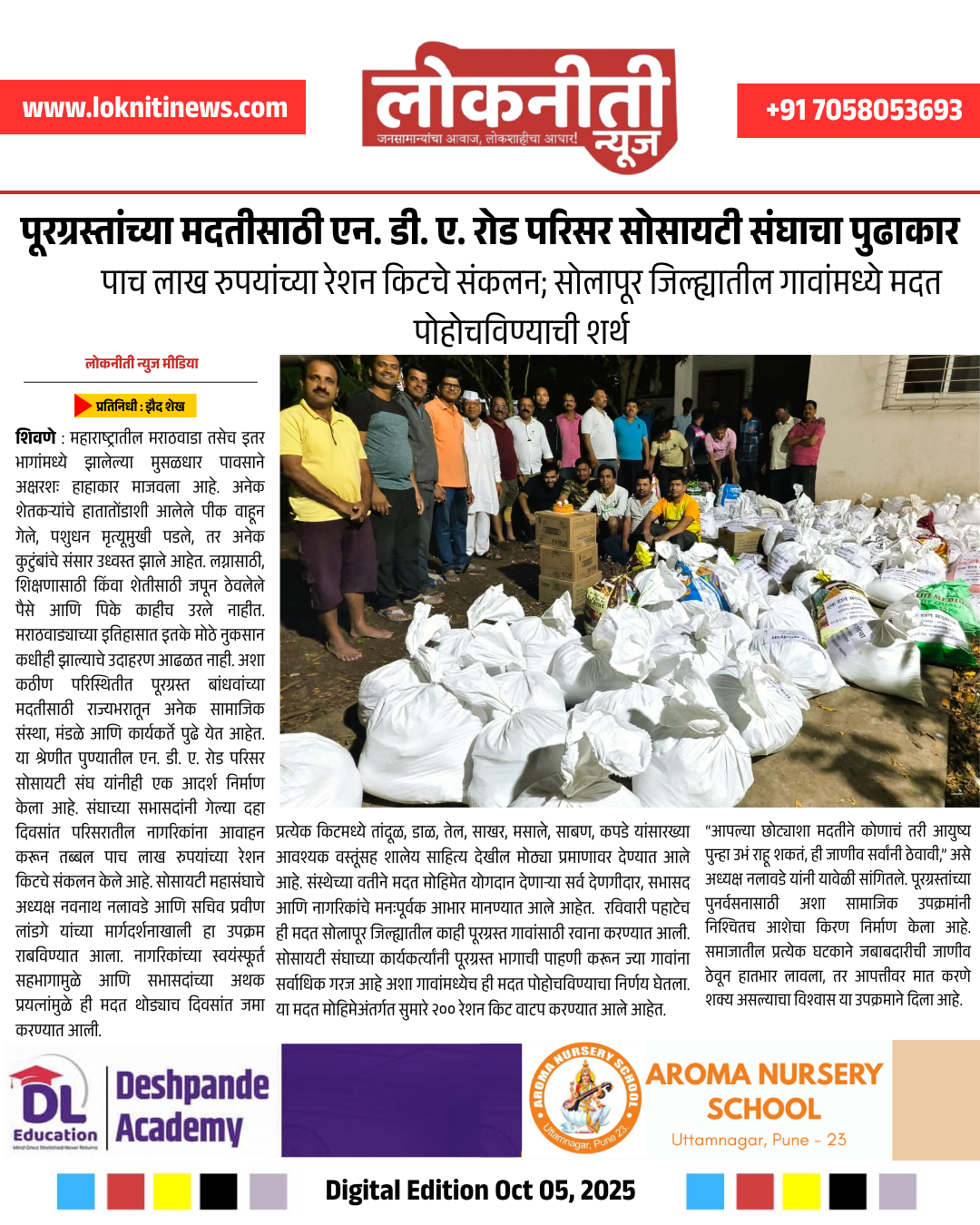 पाच लाख रुपयांच्या रेशन किटचे संकलन; सोलापूर जिल्ह्यातील गावांमध्ये मदत पोहोचविण्याची शर्थ