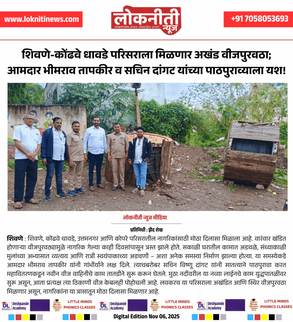 शिवणे-कोंढवे धावडे परिसराला मिळणार अखंड वीजपुरवठा; आमदार भीमराव तापकीर व सचिन दांगट यांच्या पाठपुराव्याला यश!