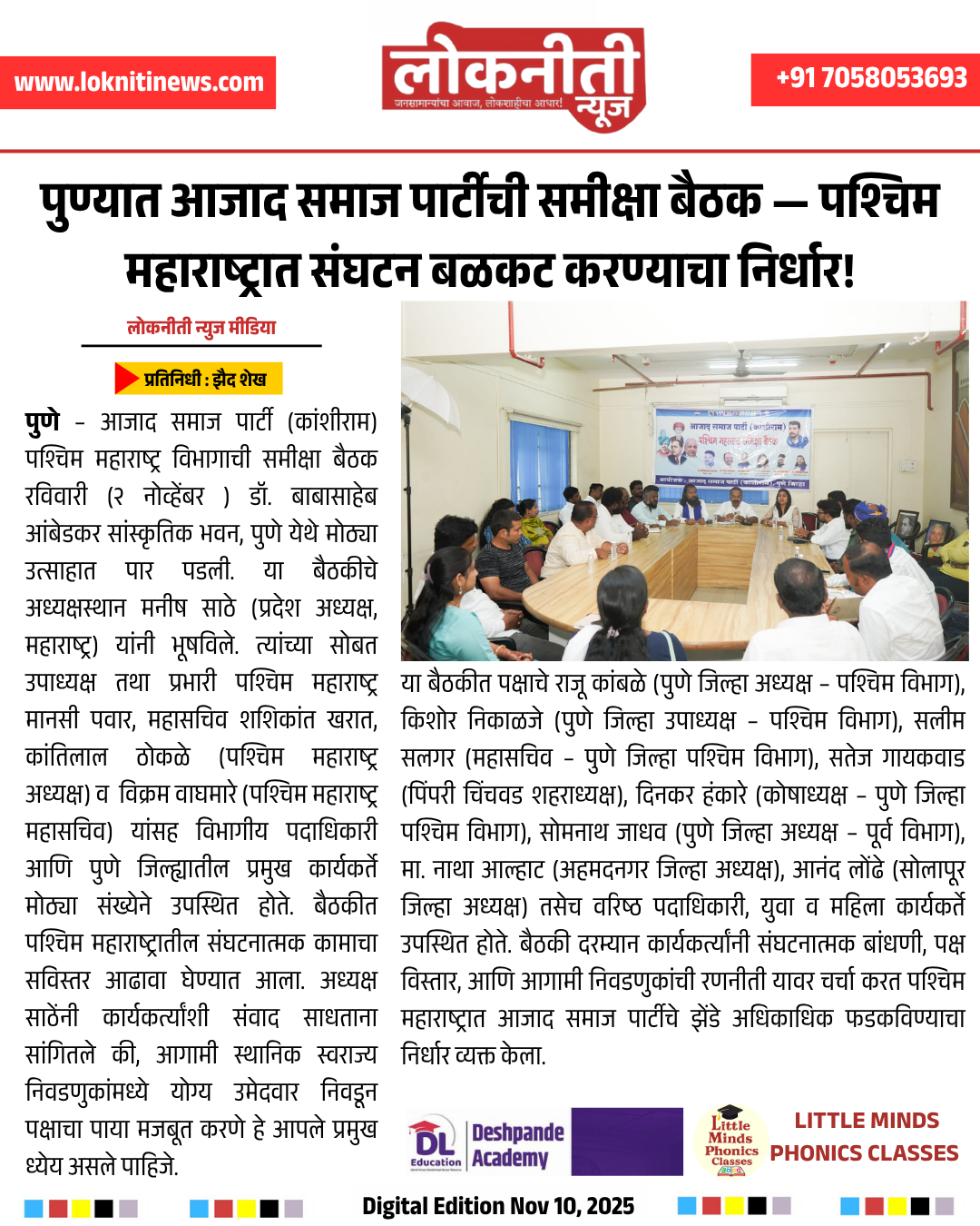 पुण्यात आजाद समाज पार्टीची समीक्षा बैठक — पश्चिम महाराष्ट्रात संघटन बळकट करण्याचा निर्धार!