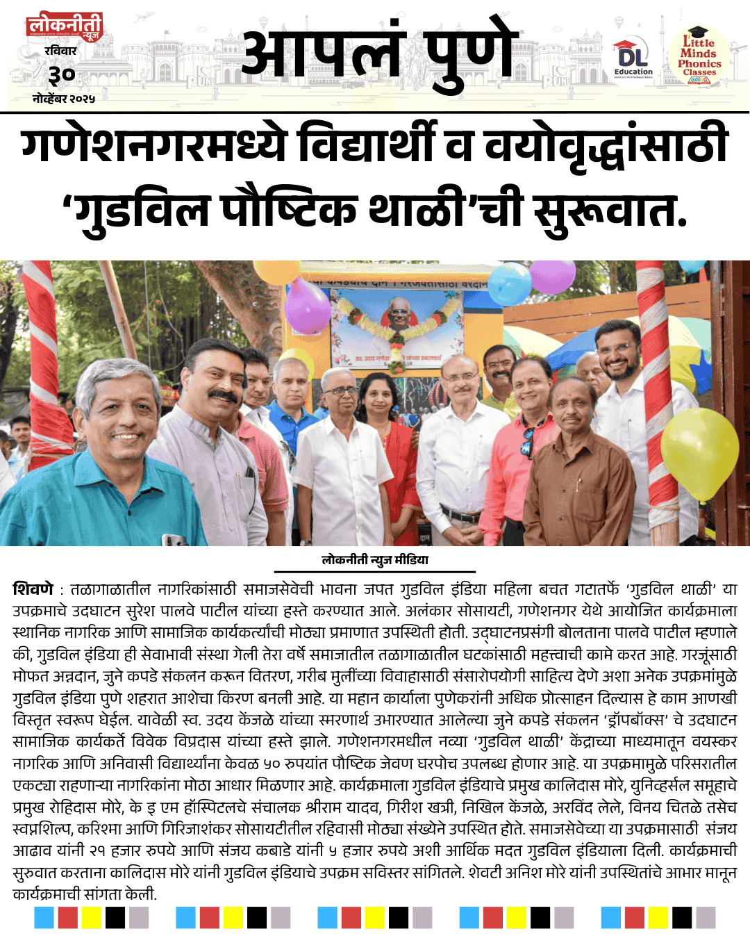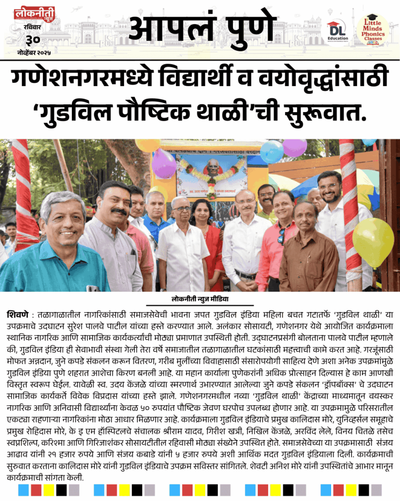 गणेशनगरमध्ये विद्यार्थी व वयोवृद्धांसाठी ‘गुडविल पौष्टिक थाळी’ची सुरूवात.
