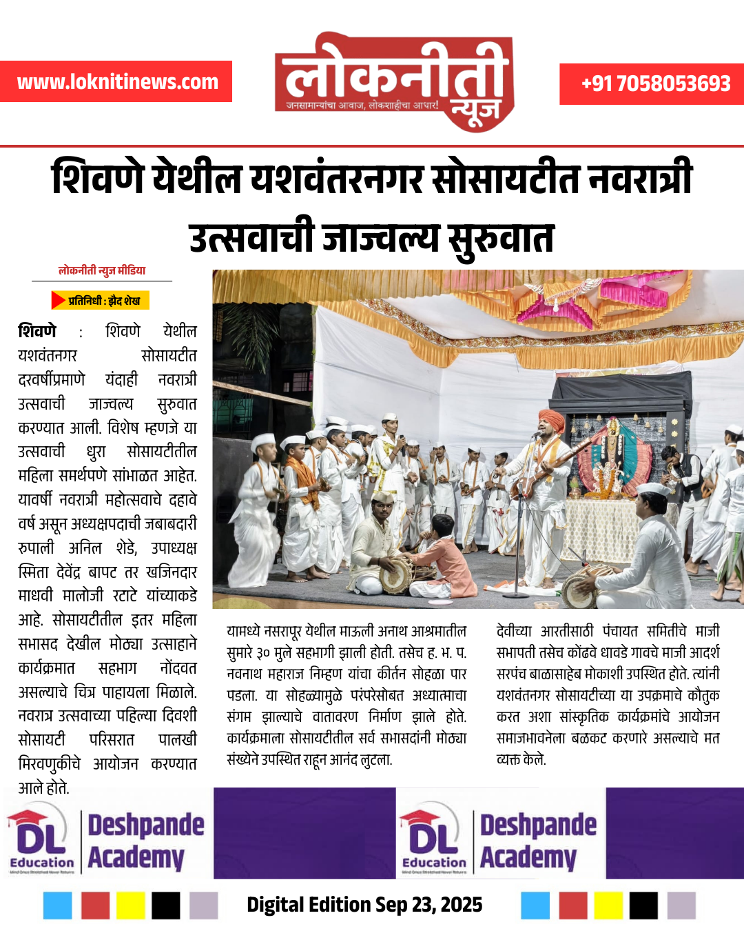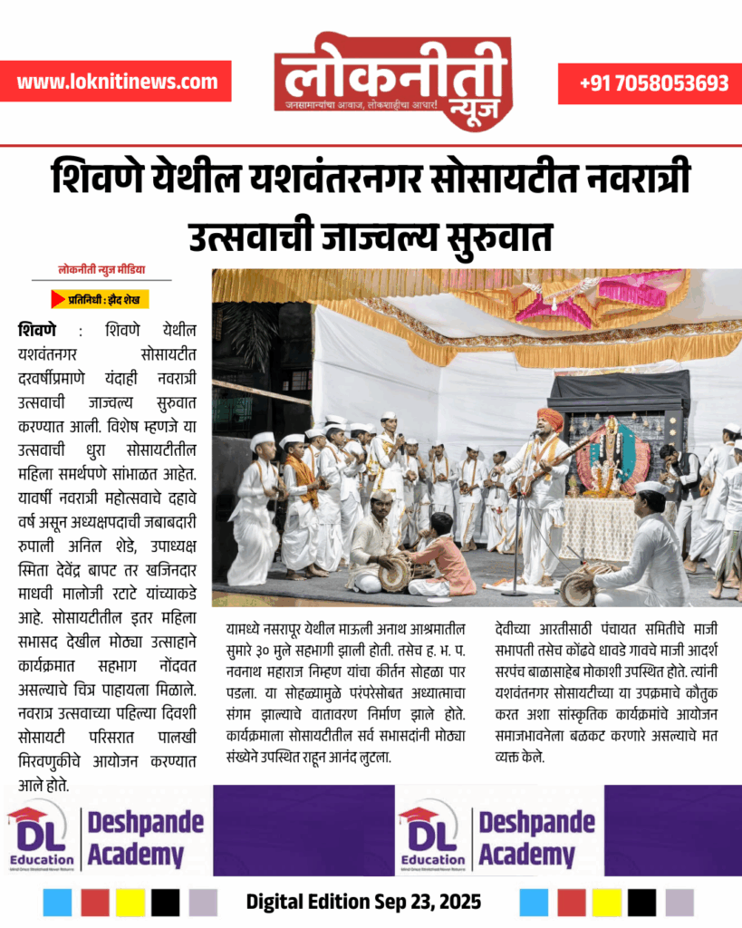 शिवणे येथील यशवंतरनगर सोसायटीत नवरात्री उत्सवाची जाज्वल्य सुरुवात.