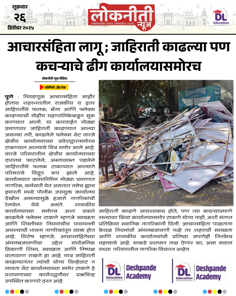 All content, images, and materials published on Lokniti News are provided for general information and public awareness purposes only. While every effort is made to ensure accuracy and authenticity, Lokniti News does not make any warranties, express or implied, regarding the completeness, reliability, or accuracy of the information. All images, videos, and other media used on this website are either created by Lokniti News, used with permission, or believed to be in the public domain. If any copyrighted material has been used inadvertently, it is purely unintentional. The concerned copyright owner may contact us for correction or removal. Unauthorized use, reproduction, or distribution of any content from this website is strictly prohibited and may invite legal action under the Indian Copyright Act, 1957. By accessing this website, you agree that any disputes arising out of or related to its use shall be subject to the exclusive jurisdiction of the courts at Pune, Maharashtra, India. © 2025 Lokniti News. All Rights Reserved.