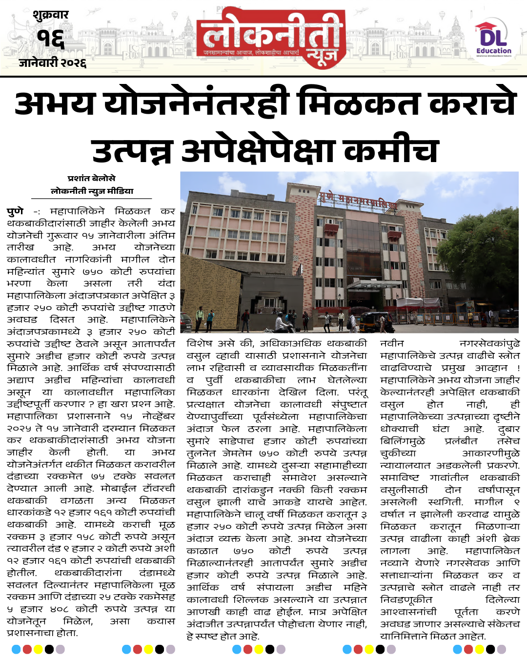 अभय योजनेनंतरही मिळकत कराचे उत्पन्न अपेक्षेपेक्षा कमीच.
