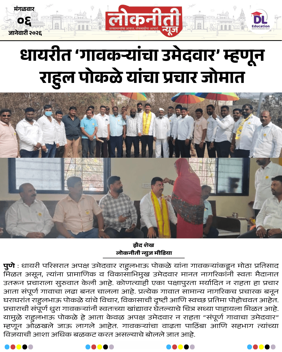 धायरीत ‘गावकऱ्यांचा उमेदवार’ म्हणून राहुल पोकळे यांचा प्रचार जोमात.