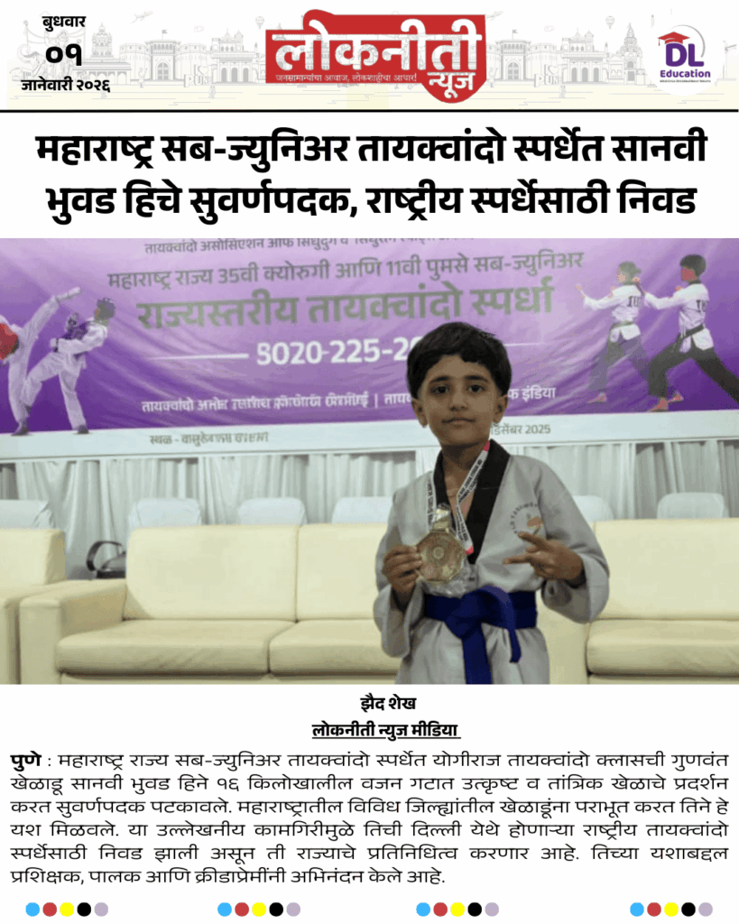 महाराष्ट्र सब-ज्युनिअर तायक्वांदो स्पर्धेत सानवी भुवड हिचे सुवर्णपदक, राष्ट्रीय स्पर्धेसाठी निवड.