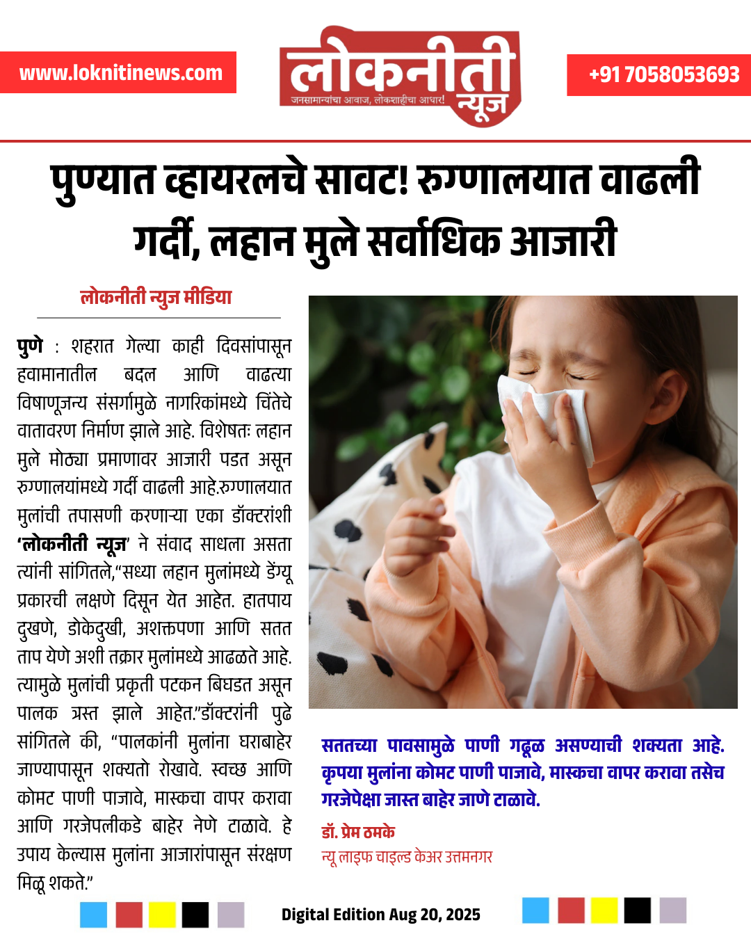 पुण्यात व्हायरलचे सावट! रुग्णालयात वाढली गर्दी, लहान मुले सर्वाधिक आजारी.