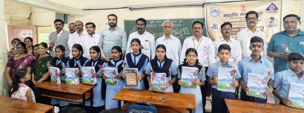शिवणे : येथील नवभारत हायस्कूलमध्ये शैक्षणिक वर्षाच्या पहिल्या दिवशी नव्याने दाखल झालेल्या विद्यार्थ्यांचे औक्षण करून, गुलाबपुष्प व वह्यांचा संच देत मोठ्या उत्साहात स्वागत करण्यात आले. पावसामुळे हा स्वागत समारंभ शाळेच्या सभागृहात पार पडला. कार्यक्रमाच्या प्रारंभी शाळेतील सर्व विद्यार्थ्यांना शाळेची माहिती देऊन मार्गदर्शन करण्यात आले. नवागत विद्यार्थ्यांच्या चेहऱ्यावर आनंद आणि उत्सुकता स्पष्ट दिसून येत होती. या स्वागत समारंभासाठी प्रमुख पाहुणे म्हणून पुणे जिल्हा शिक्षण मंडळाचे खजिनदार अँड. मोहन देशमुख, नवभारत शाळेचे प्रभारी प्राचार्य शिवराम साबळे, पर्यवेक्षक अंकुश खोपडे, अमर देसाई, रवींद्र गोलांडे, मा. जिल्हा परिषद सदस्या अनिता इंगळे, स्वीकृत नगरसेवक सचिन दांगट, राष्ट्रवादी काँग्रेसचे युवा नेते अतुल दांगट, तसेच सामाजिक कार्यकर्ते गणेश पोळ यांची प्रमुख उपस्थिती होती. कार्यक्रमास शिक्षकवर्ग, पालक आणि विद्यार्थी मोठ्या संख्येने उपस्थित होते. विद्यार्थ्यांमध्ये नव्या वर्षाबद्दल नवीन उमेद, जिज्ञासा आणि आत्मविश्वास निर्माण करणारा हा स्वागत सोहळा संस्मरणीय ठरला. कार्यक्रमाच्या यशस्वी आयोजनाबद्दल शिक्षक व कर्मचारी वर्गाचे उपस्थितांनी कौतुक केले.